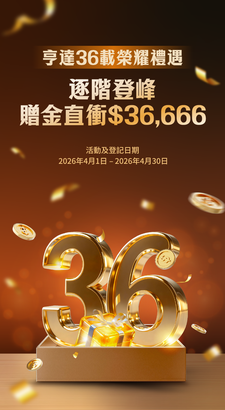 層層進階,步步加碼,讓每一次交易更具價值,與亨達共赴36載榮耀之路。